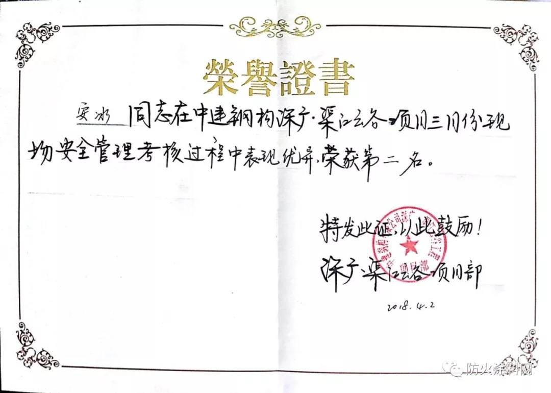 深广·渠江云谷项目在工程管理中心张建鑫经理的带领下,我司专职安全员安冰同志,在3月份的现场安全管理考核中,表现优异,荣获第二名,并获表扬信,这是整个项目团队共同努力的结果,公司亦向项目团队表示祝贺!同时希望在建的各项目向深广·渠江云谷项目部学习,全面从严管理,加强履约,保质保量的完成各项指标。