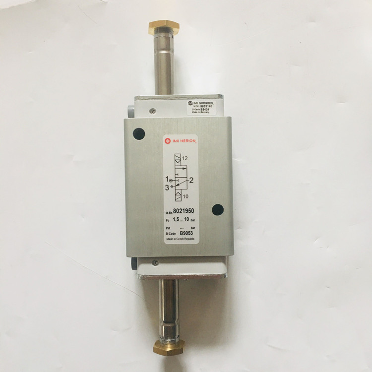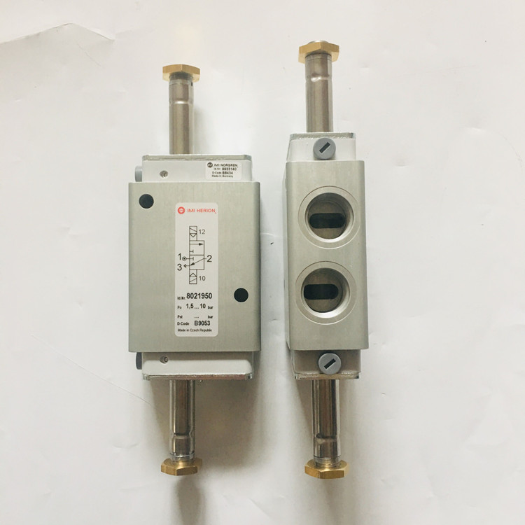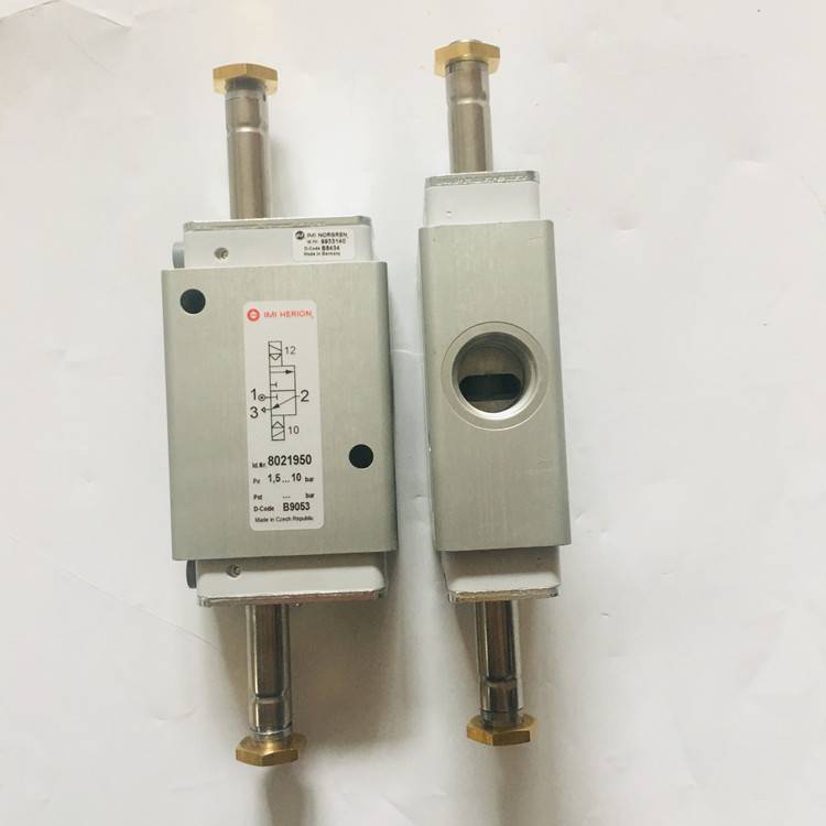 8021950德国海隆IMI HERION双电控电磁阀技术参数:接口尺寸G1/2、功能NC、双电控、流量3000l/min、工作压力1-10bar、响应时间20ms、阀体重量0.99kg、产地为德国、配海隆线圈数量为2个!