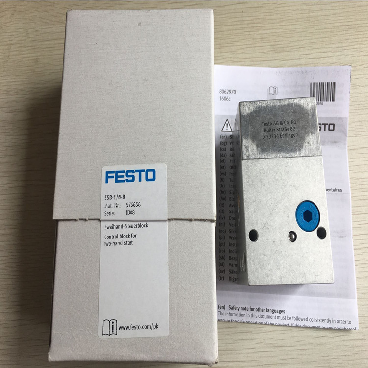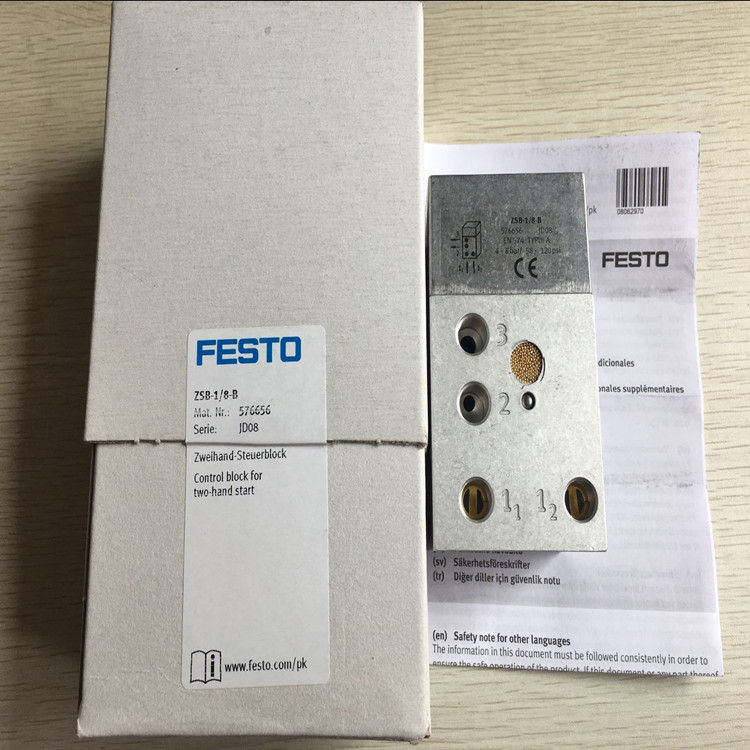 ZSB-1/8-B德国费斯托(festo)双手控制块简介:接口尺寸1/8、压力范围4-8公斤、应用在汽车制造行业、订货号为576656
