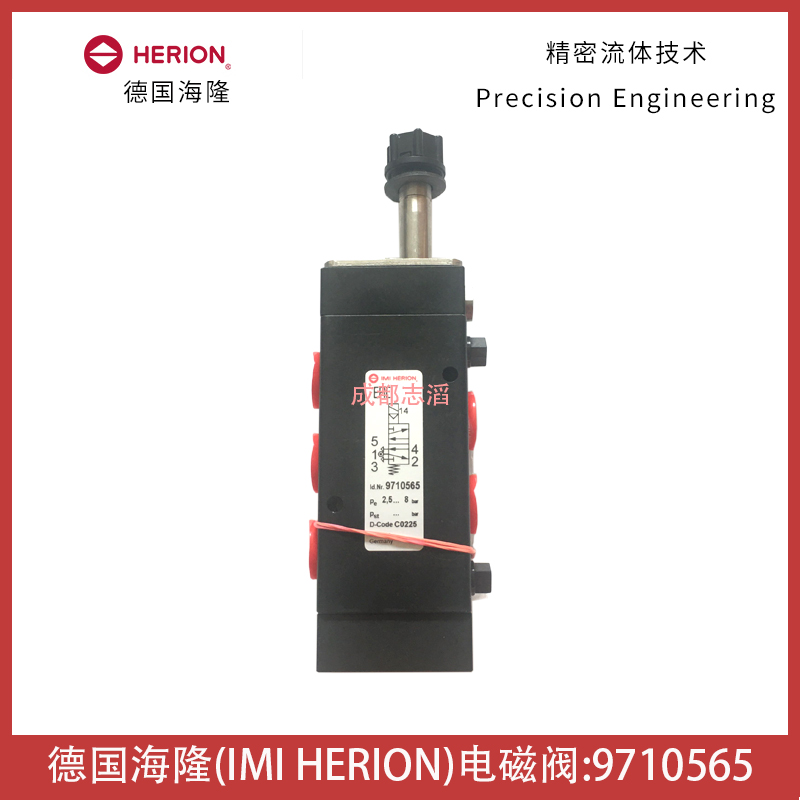 9710565.0000.000.00德国海隆(IMI HERION)电磁阀技术参数简介:接口尺寸1/2NPT、功能2位5通、工作方式电控/弹簧、KV值为2.6立方米/H、阀体重量为0.7kg、产地为德国、