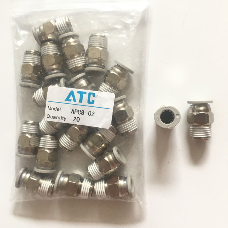 APC8-02现货台湾亚德客AIRTAC接头产品特点简介:外观小巧、节省安装空间、性价比高、螺纹部分涂有密封附件剂、M5公制螺纹附密封垫片、确保螺纹连接部分无泄漏、塑料接口部分颜色有灰色和黑色可选、方便与配管!