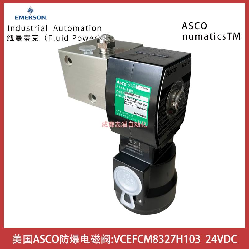 VCEFCM8327H103线圈电压24VDC美国阿斯卡ASCO防爆电磁阀技术参数简介:管径1/4、通径5.7mm、流量系数0.45立方米/小时(7.5l/h)、工作压差0-10bar、线圈功耗RP、响应时间75-100ms、zui大粘度65CST(MM/S)、安装方式NAMUR、直动式、机能2位3通、