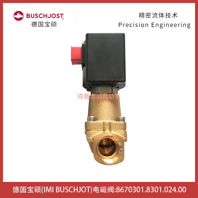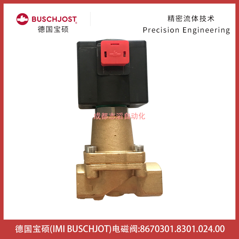 8670301.8301.024.00德国宝硕IMI(buschjost)电磁阀技术参数:接管口径G3/4、通径20mm、KV值为6.5立方米/h、工作压力0-25bar、阀体重量1.8kg、配宝硕普通线圈8301(线圈功率22W、PA0-25BAR、3220)、线圈电压为24V直流!!、产地为德国、应用在轨道交通设备!