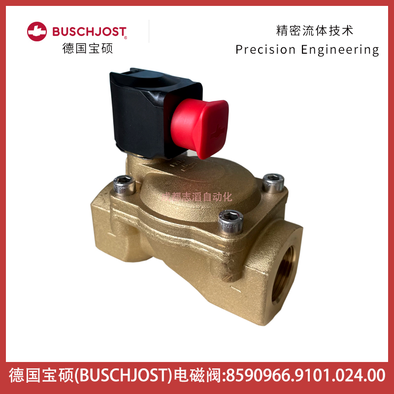 8590966.9101.024.00德国宝硕BUSCHJOST电磁阀-IMI埃迈诺冠技术参数简介:接管口径3/4、螺纹G直螺纹、压力范围0.3-16bar、阀体材料黄铜、线圈9101、电压24VDC、线圈功率12瓦、产地德国、货期10-12周