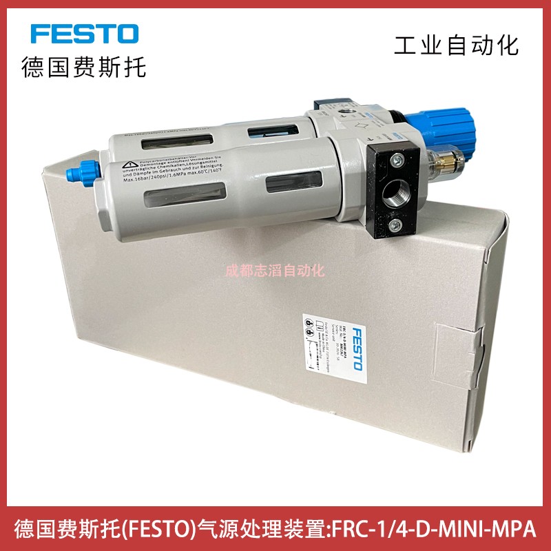 FRC-1/4-D-MINI-MPA德国费斯托FESTO气源处理过滤减压阀油雾器技术参数简介:系列D、控制锁可锁定旋转手、安装位置垂直 +/-5°、冷凝水排放装置手动旋转、结构特点带压力表的过滤减压阀标准比例油雾器、冷凝容积22ml、过滤等级40um、金属保护罩、压力表(模拟)或压力显示器(数字)、工作压力1-16bar、压力调节范围0.5-12bar、标准额定流量(根据 DIN 1343 标准化)1000 l/min、工作介质压缩空气、工作和先导介质说明可用润滑介质工作(之后须一直润滑介质工作)、耐腐蚀等级 CRC2 - 中等耐腐蚀能力、油漆湿润缺陷物质(PWIS)符合性VDMA24364-B1/B2-L、介质温度/环境温度-10 °C ... 60 °C、产品重量660g、安装方式管式安装带附件、气接口G1/4、材料说明RoHS 合规、外壳材料压铸锌、碗罩材料PC