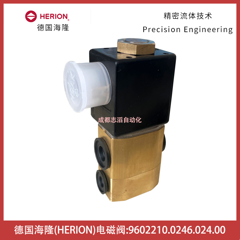 9602210.0246.024.00德国海隆电磁阀HERION直动式-气动控制元件技术参数简介:介质中性气体或者液体、流向固定、流体温度-25到80摄氏度、环境温度根据线圈而定、阀体材料黄铜、适用电磁线圈13B、接口尺寸G1/4、功能NO、通径5mm、工作压力0-9bar、KV值0.1立方米/小时、阀体重量0.5kg、线圈0246、电压24VDC、线圈功耗7瓦、产地捷克、货期10-12周