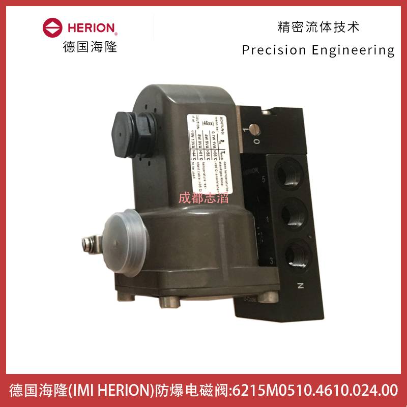 6215M0510.4610.024.00德国海隆(IMI HERION)隔爆电磁阀技术参数简介:功耗为M中等功耗(3.9W)、功能为3/2和5/2NAMUR弹簧复位、阀体材料阳极氧化铝/NBR(温度范围在-40到60摄氏度)通径为6mm、流量为1200l/min、工作压力范围2.5-8bar、阀体重量为0.48kg、阀体产地为中国、接口尺寸为NPT1/4、手动控制为1/4圈旋转手动控制、配海隆隔爆线圈4610(技术参数:功耗3.9W、额定电流162MA、防护等级IP66带电气接头、防爆ATEX类别II2 G Ex D mb IIC T4/T6 Gb,II2 G Ex e mb IIC T4/T6 Gb , II2 D Ex tb IIIC T13摄氏度Db、环境及流体温度T4(-40到80摄氏度)T6(-40到55摄氏度),-40到80摄氏度、电气接口1/2NPT、线圈重量0.8kg、产地为接口)!应用在石化行业阀门控制