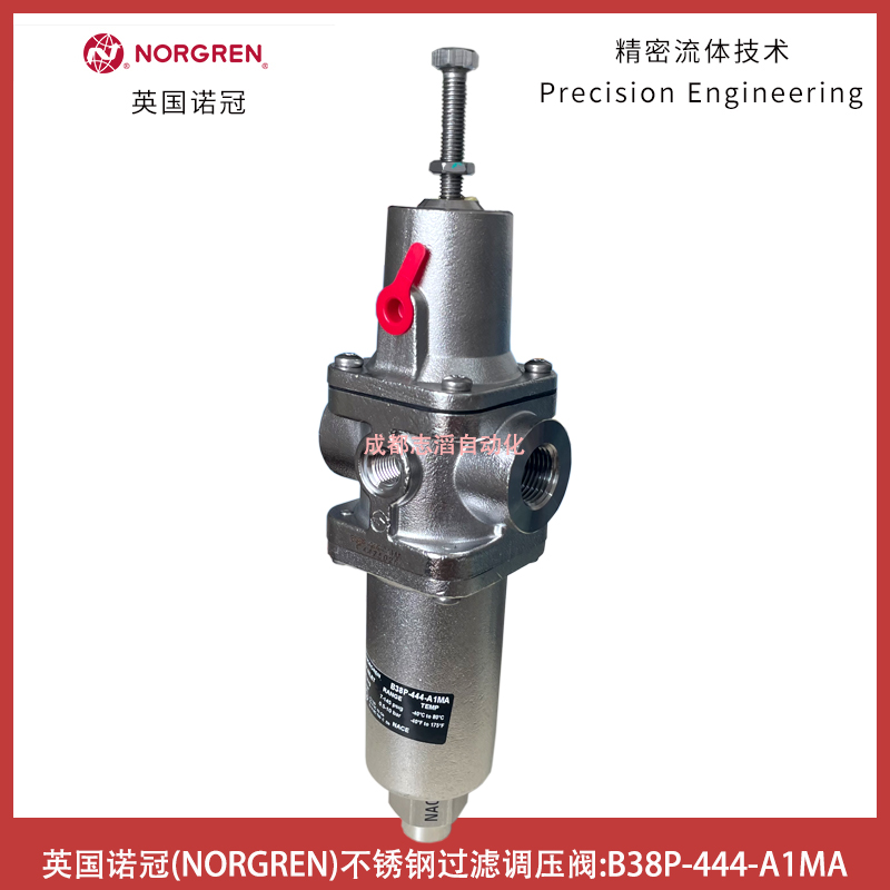 B38P-444-A1MA英国诺冠不锈钢过滤调压阀NORGREN气源处理器技术参数简介:接口尺寸1/2NPT、出口压力0.5-10bar、过滤精度为5um、流量为40升/min、排水方式自动、重量为2.41kg、材料壳体,滤杯,上盖,滤芯以及调节螺钉为316不锈钢、密封为FKM或NBR、环境及流体温度范围为-20到80摄氏度、进口压力可达17bar、产地为中国!
