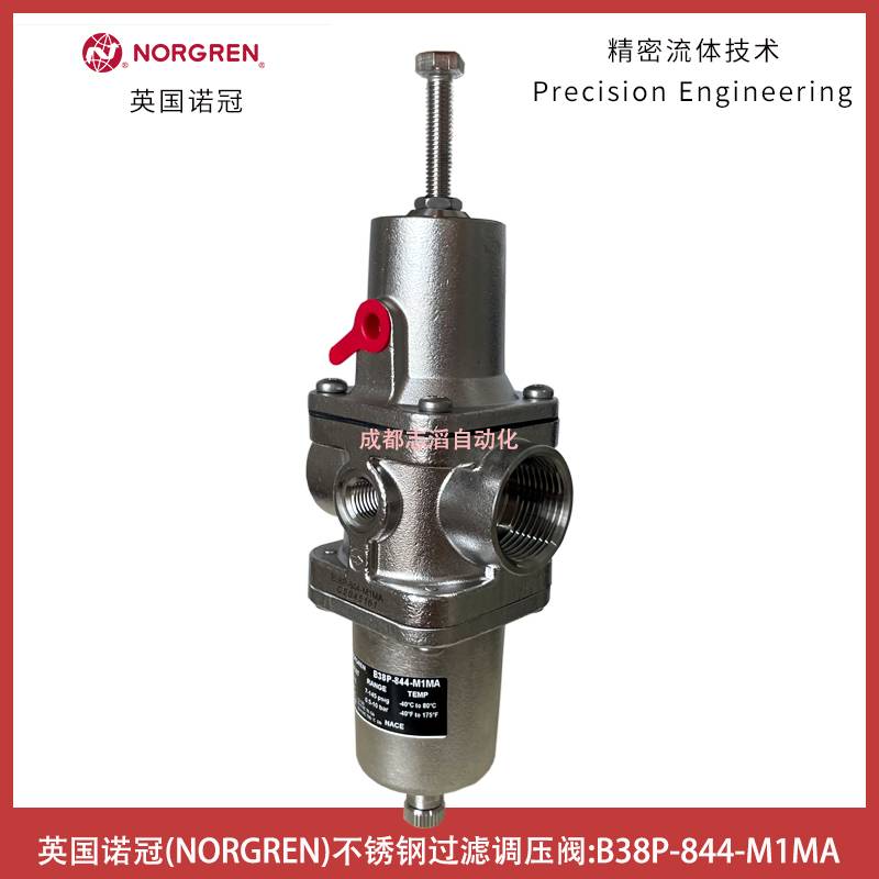 B38P-844-M1MA英国诺冠不锈钢过滤调压阀NORGREN气源处理器技术参数简介:接口尺寸1寸NPT、出口压力0.5-10bar、过滤精度为5um、流量为40升/min、排水方式自动、重量为2.04kg、材料壳体,滤杯,上盖,滤芯以及调节螺钉为316不锈钢、密封为FKM或NBR、环境及流体温度范围为-20到80摄氏度、进口压力可达17bar、货期1周、应用在石化、海上平台等、产地为中国!
