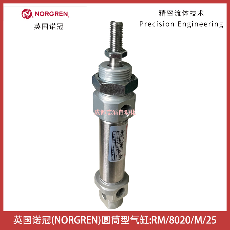 英国诺冠NORGREN圆筒型气缸(ISO)RM/8000系列技术优势:标准型为磁性活塞、符合ISO6432标准、高强度,双压接端盖设计、防腐蚀、标准型采用缸前端螺母和活塞杆锁紧螺母、可选气口位置以便紧凑安装