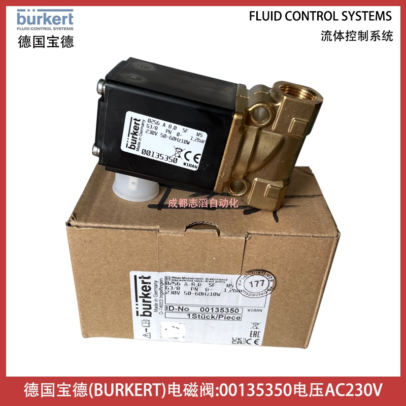 00135350德国宝德电磁阀BURKERT流体控制隔膜阀黄铜材质技术参数简介:接管口径3/8、产地德国、货期6-8周、线圈电压230伏交流、阀体材料黄铜、线圈供货10瓦、PN0-1.2BAR、