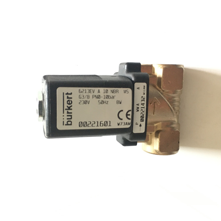 00221601德国宝德(burkert)电磁阀技术参数:阀体材料黄铜、 6213EV,A10NBR,MS,接口尺寸3/8、接口螺纹G(直螺纹)、工作压力范围0-10bar、线圈电压AC230V、频率50HZ、线圈功率8瓦、W73AM、PA00221432WWA
