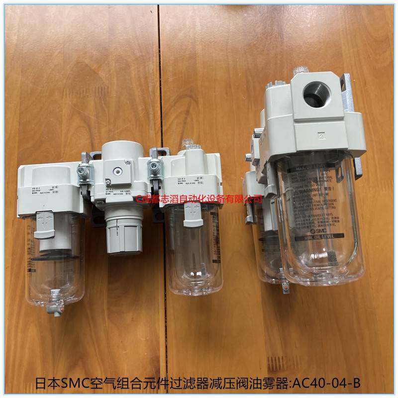 AC40-04-B日本SMC空气组合元件过滤器减压阀油雾器技术参数简介:主体大小40、接管口径Rc1/2、无自动排水器、无压力表、无附件压力范围0.05~0.85MPa设定,聚碳酸酯杯,油雾器上不带排水活门、带排水活门,溢流型,流向:左→右,产品标牌、杯注意指示和压力表的单位表示:MPa、产地中国、货期2-3周、介质压缩空气、追加定制规格 [New]、提高目视确认性和安全性、可操作性提高、因滤芯和杯体的一体化,更换滤芯时,可拿在手里轻松进行、减少维护空间 削减46%、减压阀:设定压力0.05~0.85MPa、0.02~0.2MPa、可选择压力计、方形埋入式压力表、圆形压力表、电子压力开关