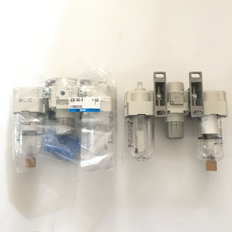 AC40-04G-B原装SMC空气组合元件(空气过滤器、减压阀、油雾器)技术参数简介:共同规格-耐压可达1.0MPA、环境及流体温度范围-5到60摄氏度(未结冰)、过滤精度5um、建议用油透平1号油(ISO VG32)、杯保护罩AC40有、调压范围0.05-0.85mpa、结构为溢流型、组件为空气过滤器AF30、减压阀AR40、油雾器AL40、接管口径1/2、压力表口径RC1/8、带托架隔板Y300T、压力表型号G36-10-01、产地为中国!
