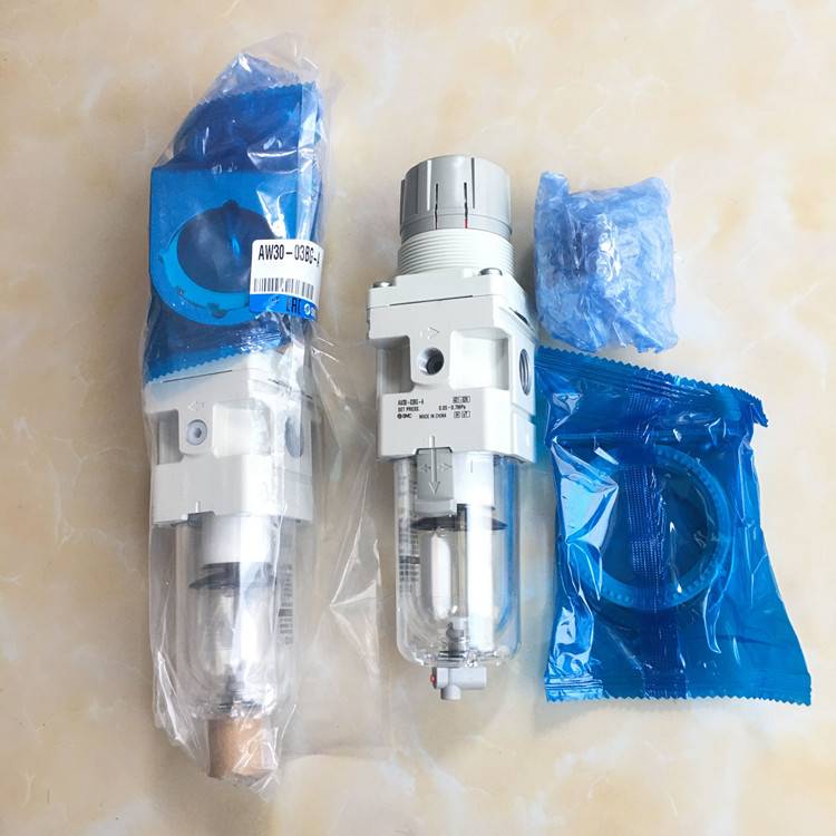 AW30-03BG-A日本SMC过滤减压阀(气源处理二联件)技术简介:连接口径为3/8、使用流体为空气、使用压力范围1mpa、设备压力为0.05-0.8mpa、压力表接口为1/8配压力表型号为G36-10-01、带安装托架型号为AW30P-270AS、溢流压力为设定压力为+0.05mpa时溢流为0.1、环境及流体温度范围-5到60摄氏度、过滤精度5um、过滤器和减压阀一体化,省空间,省配管、冷凝水驻留量8立方厘米、杯材质为聚碳酸酯、构造为溢流型、没有保护罩、产地为中国,应用在汽车工厂自动化流水线、控制阀门气源处理!